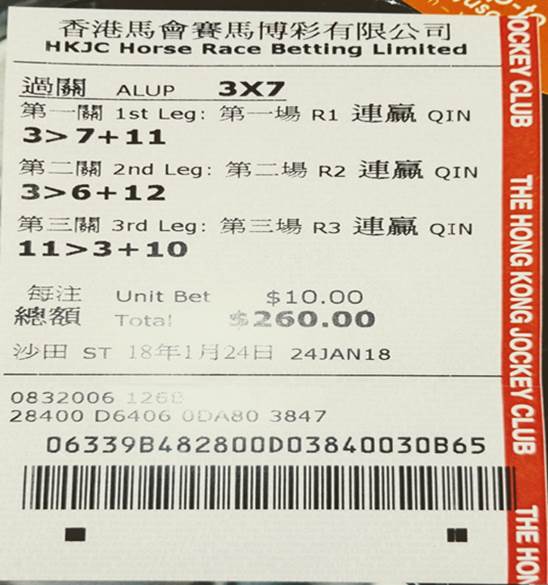 1月24日:用者只投注260元,命中Q過關收27萬2千元 ($272,787.8元)